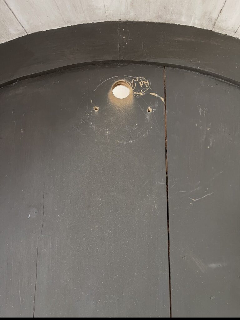 Once the unit was cleand and prepped, I painted the entire exterior and main body in Sawmill Gravy by Dixie Belle. It’s a great neutral that brightens up the piece.For the back panel, I wanted some contrast to make the glasses pop, so I painted that in Coffee Bean by Dixie Belle. I made sure to use a brush that would lay the paint into all the nooks and crannies for a smooth finish.