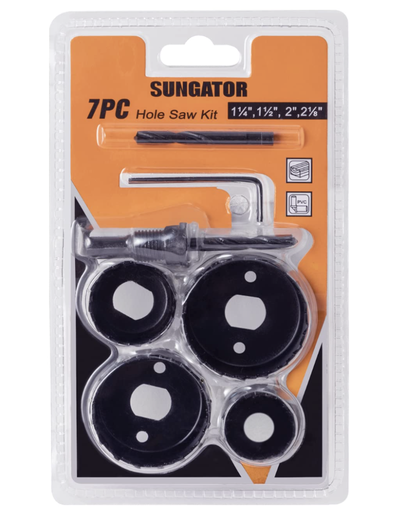 I attached the hole saw to my drill a cut the hole right through the back of the entertainment center. You can purchase this kit at Amazon by clicking here